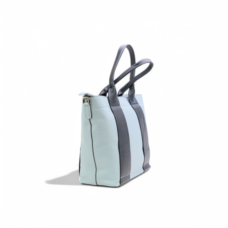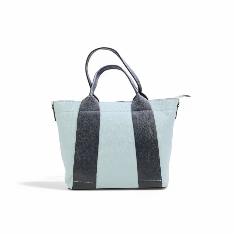 Дамска ежедневна чанта от естествена кожа в светло синьо и черно 259023-1