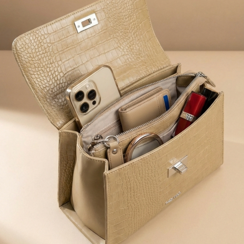Структурирана дамска чанта с елегантен силует и практична организация – с три отделения за подредено ежедневие.