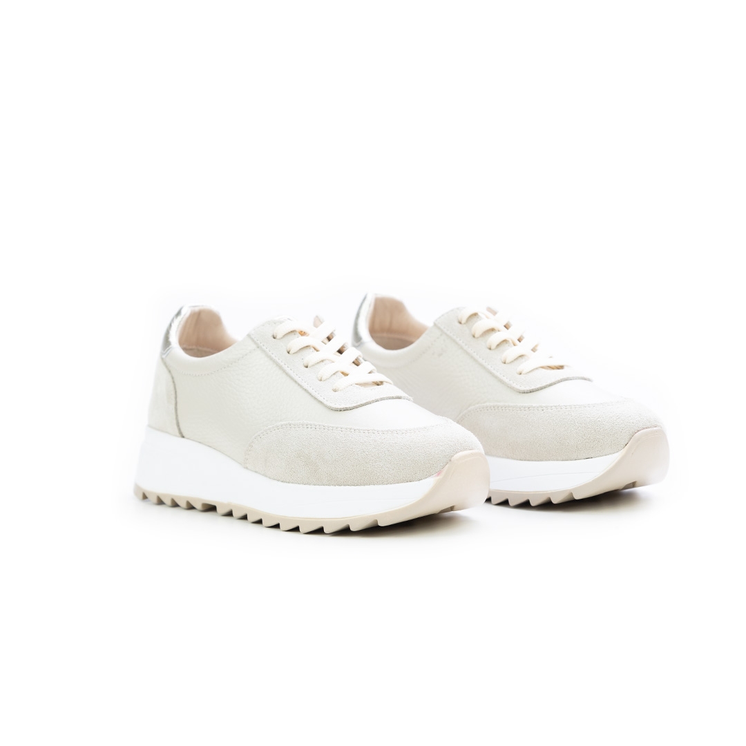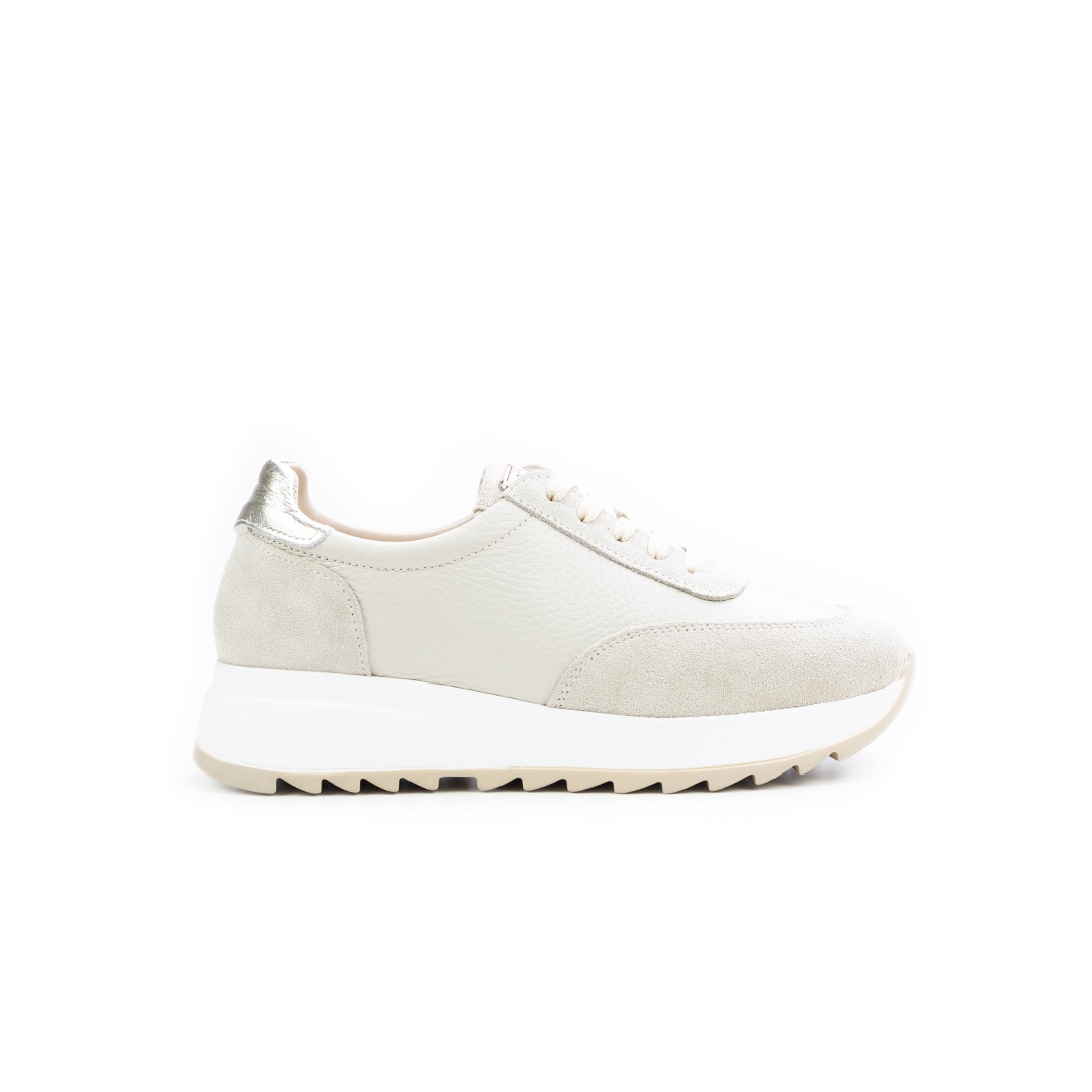 Дамски спортни обувки в комбинация от естествена кожа и естествен велур в елегантен бежов цвят, съчетаващи модерен дизайн и изключителен комфорт. Перфектен избор за ежедневни визии с усещане за лекота и стил.