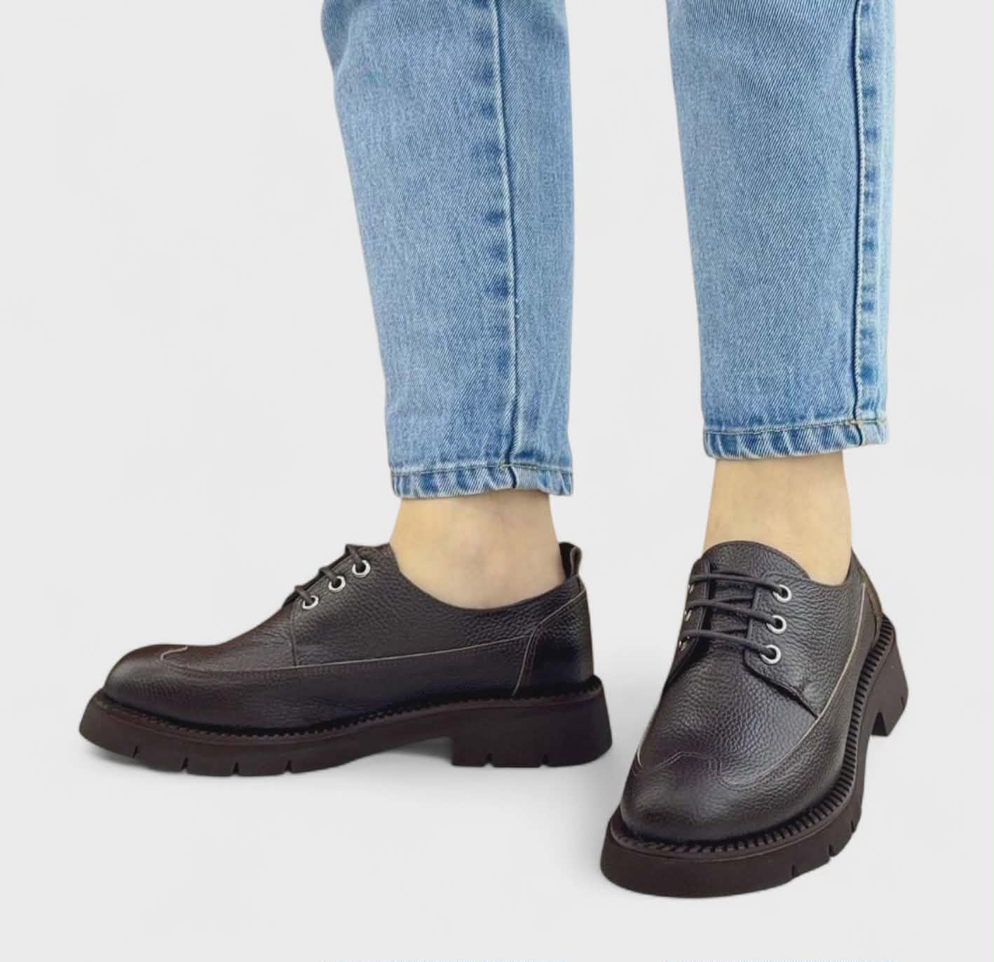 Дамски ежедневни обувки от естествена кожа кафяви 701