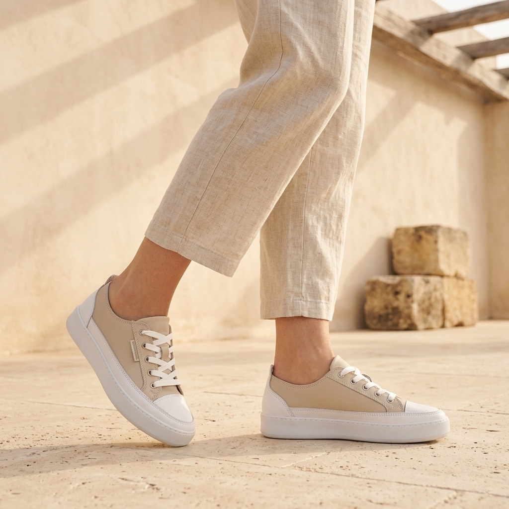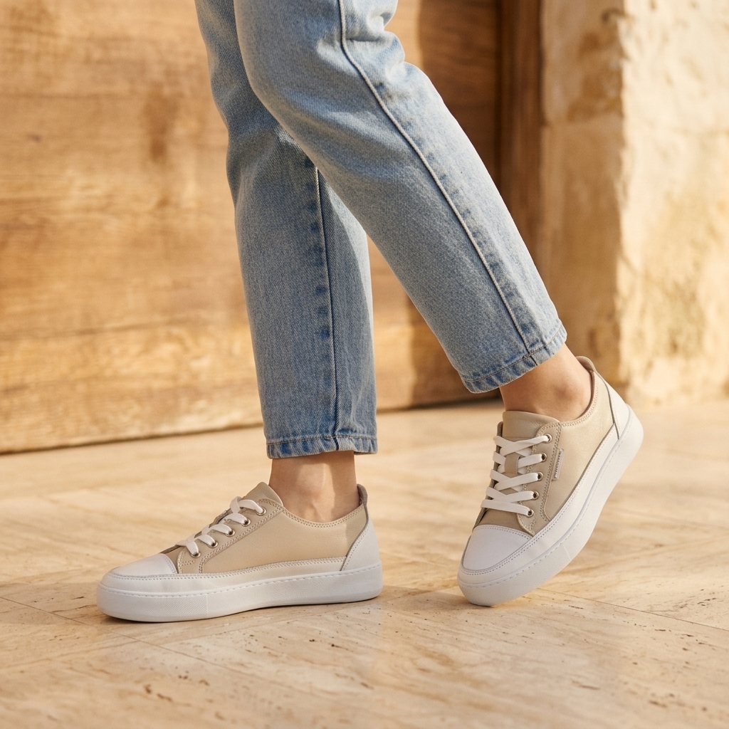 Модерни дамски ежедневни обувки от естествена кожа в стилен камел, които комбинират комфорт и актуален дизайн. Отлично решение за ежедневни визии и лесно съчетаване с разнообразни аутфити.