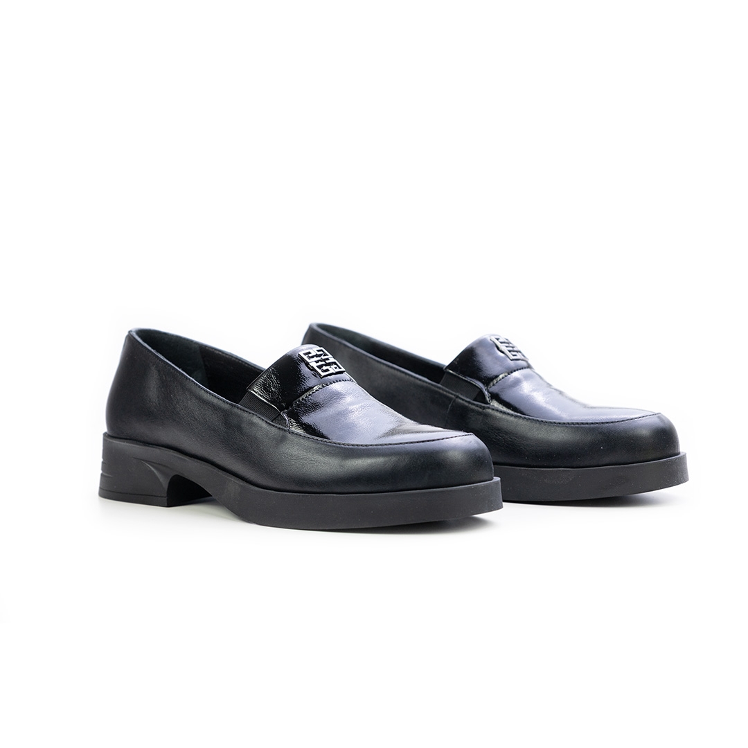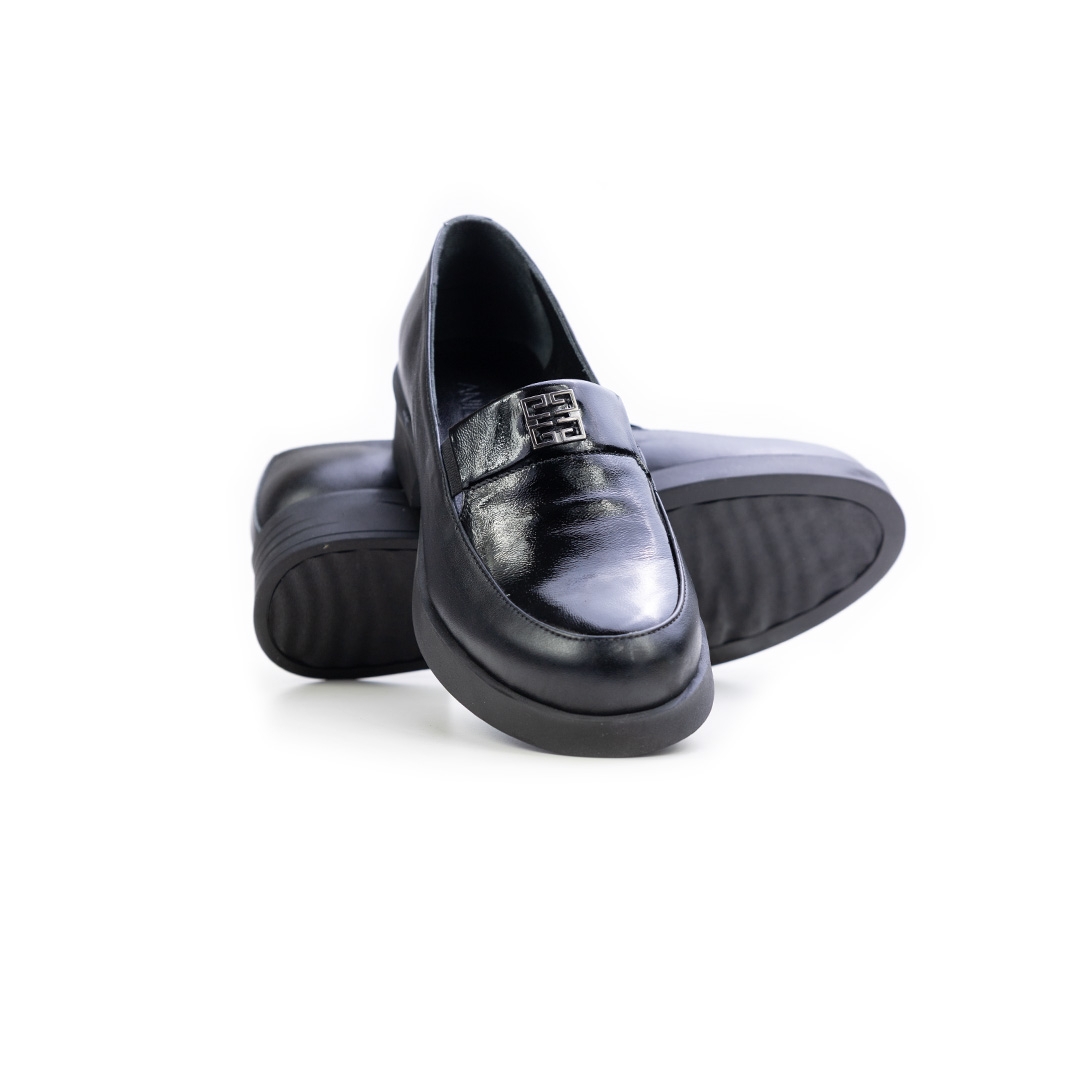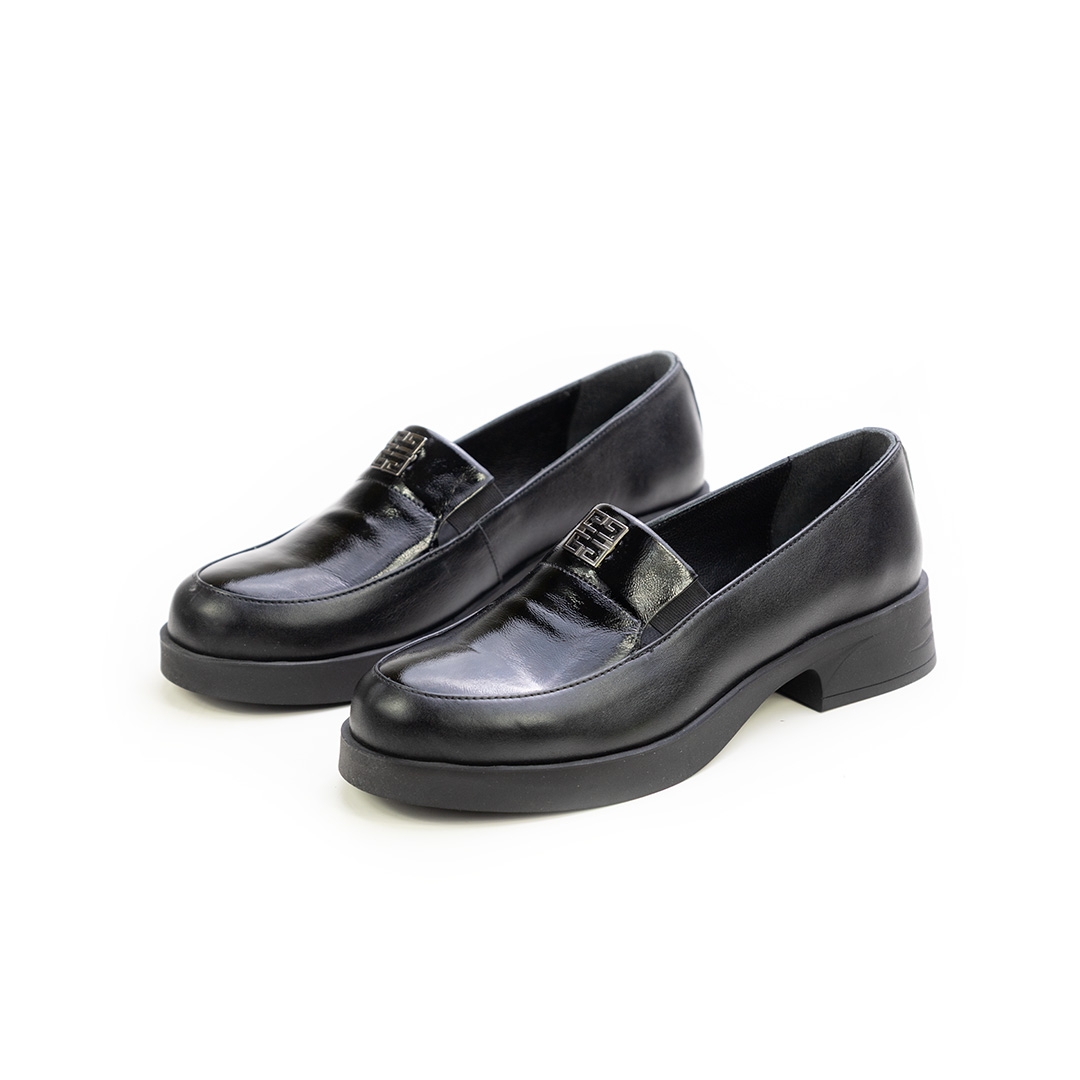 Дамски ежедневни обувки в комбинация естествена кожа и естествен лак черни 10-309-01-301